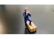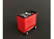 Jake pushes tool trolley (Case IH red)Hand painted detailed diorama figure in overall